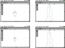 | 6. Start the face cross section. Create the next cross section with muzzle and jaw shapes embedded in the main object. i.e. fork sample. | ![]() ![]() | |||